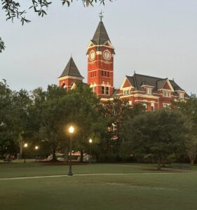 A: Campus is lively during the first weeks of the semester, especially near the Auburn University Library. It calms into a steady rhythm afterward.