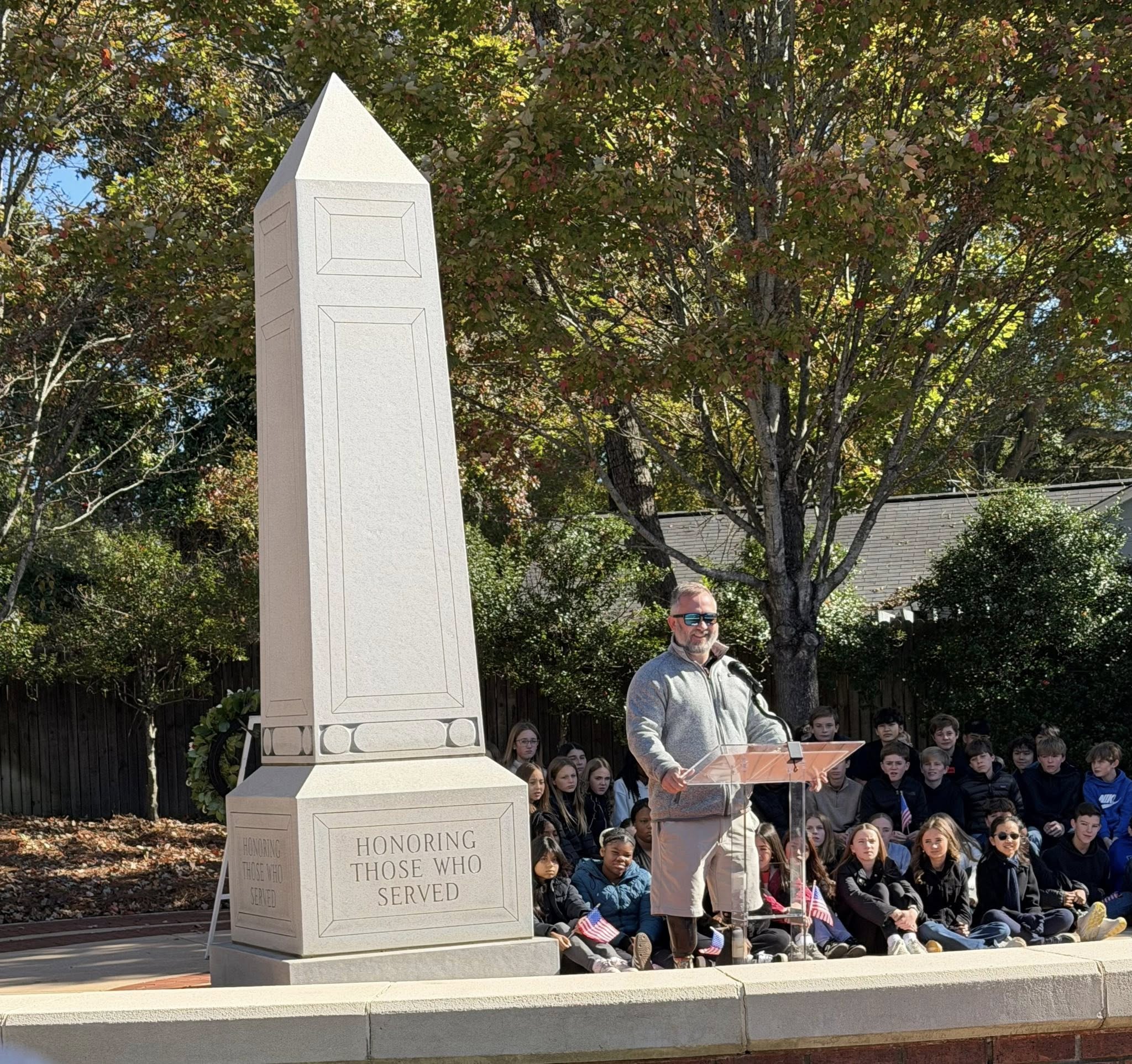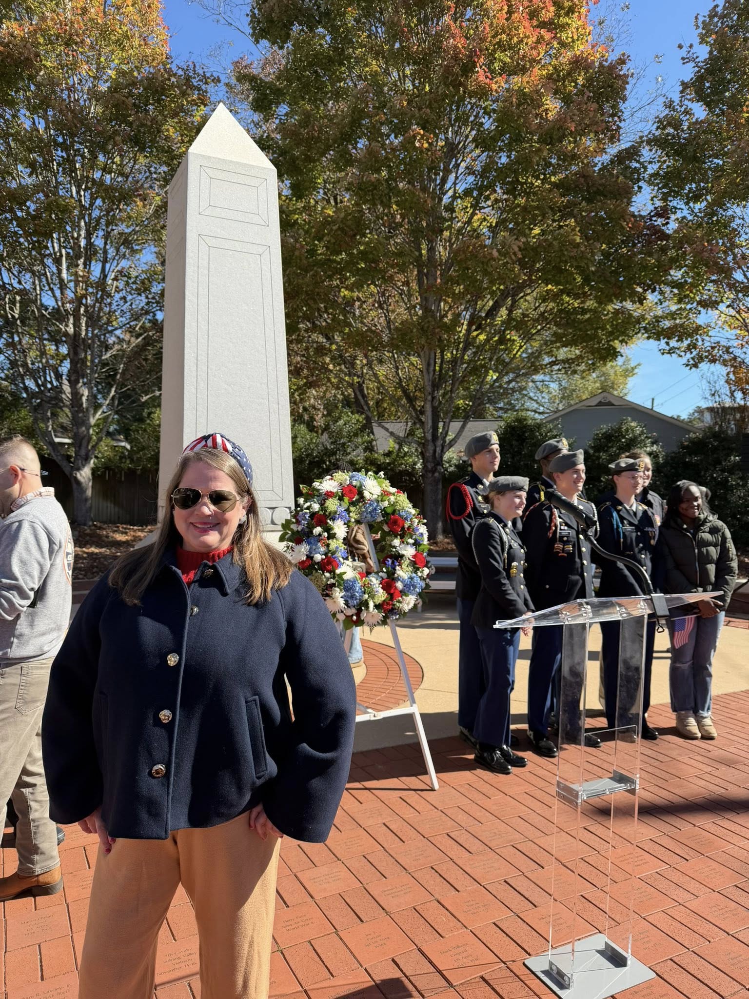 This morning, I stopped by the Veterans Memorials in both cities. The one at Auburn University sits in a place that symbolizes strength, pride, and education—a reminder of the students, faculty, and alumni who’ve served through the generations. The Opelika Veterans Memorial is equally powerful, surrounded by trees and tranquility. Each name, each plaque, and each flag represents a story of bravery that shapes the fabric of our hometowns.